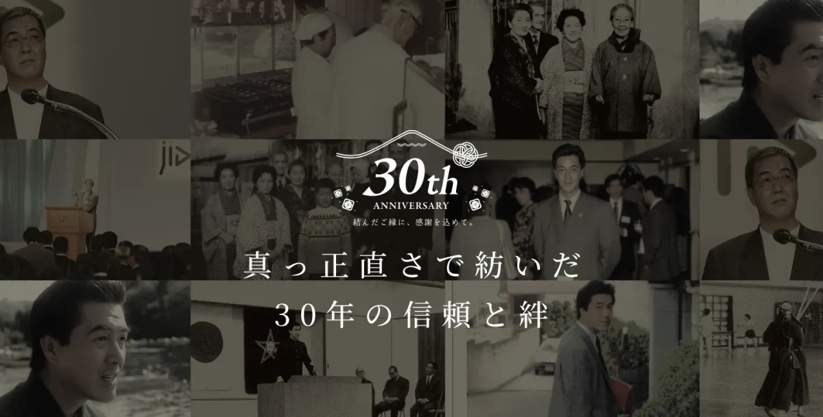 新たに開設された記念サイトは、落ち着いた色調でデザインされ、創業から現在までの貴重な写真が随所に配置されています。こうした視覚的要素により、30年間の歩みが感じられる仕上がりとなっています。