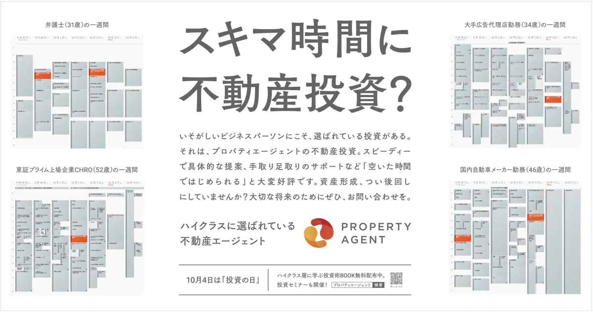 広告期間は2023年9月29日から10月5日まで。新宿駅と東京駅という首都圏のビジネスハブに、大型ボード広告を掲出し、「スキマ時間に不動産投資?」というキャッチコピーでビジネスマンの関心を惹くことを狙います。この広告では、実際のオーナー様のカレンダーをモチーフにしており、予定が詰まった中に「PAとの面談」の予定を見せることで、多忙なビジネスパーソンの資産形成の意識を訴求しています。