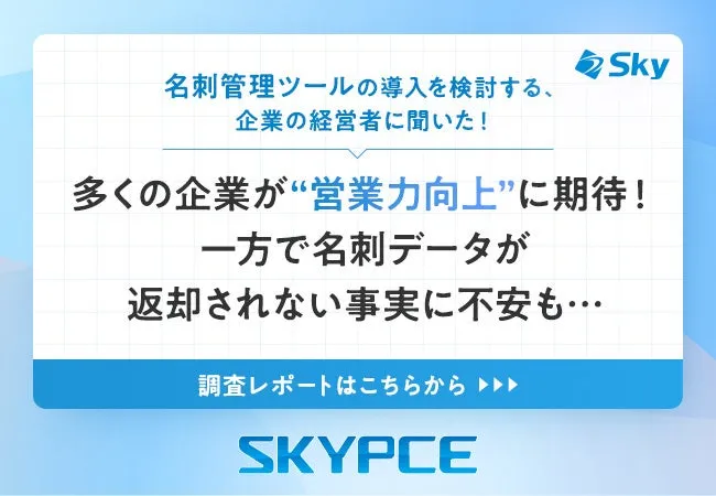 Sky株式会社。名刺管理ツールの導入を検討する企業の経営者303名を対象としたもので、現在の名刺管理方法や実際の課題を明らかにしました。