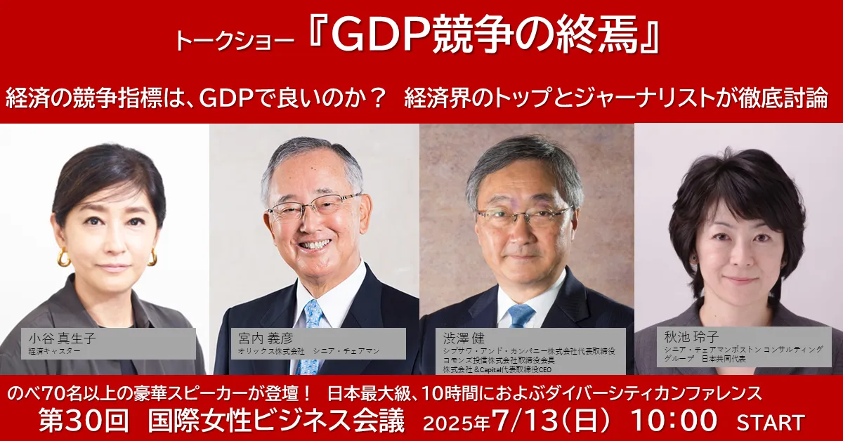 7月13日に行われる第30回国際女性ビジネス会議は、各界の優れたスピーカーたちが集まり、ダイバーシティが日本経済において重要な役割を果たすことを議論します。オリックスのシニア・チェアマン宮内義彦氏や、ボストンコンサルティング日本代表の秋池玲子氏、渋澤健氏、小谷真生子氏など、豪華なラインアップが誇るこのイベントは、まさに日本の未来を考えるための絶好の機会です。