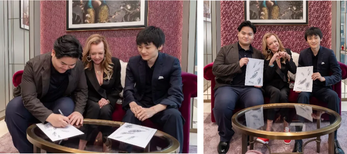 2025年3月には、Kambara Art StudioとChopardが共同でデザインしたハイジュエリー作品が発表される予定です。このジュエリーのモチーフは「羽根」であり、鳥が感謝の気持ちを示すために羽根を差し出すという物語からインスピレーションを受けているとのこと。この作品には「感謝のしるし」としての意味合いが込められています。作品の制作も着々と進行中です。
