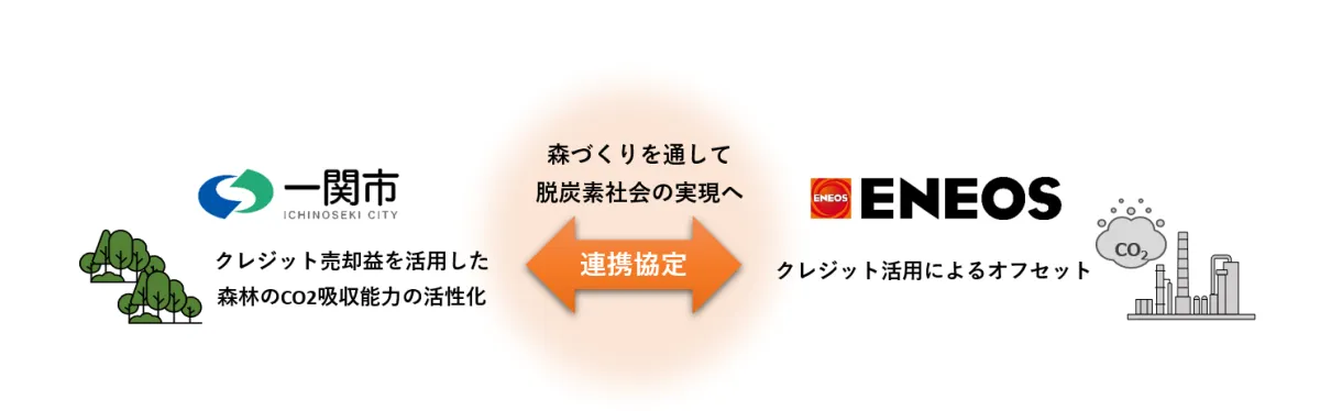 2024年12月、一関市とENEOS株式会社は、「一関市有林を活用したJ-クレジット利活用による脱炭素社会の実現」に向けた連携協定を締結しました。この協定により、ENEOSは一関市が管理する市有林から生み出された森林由来のJ-クレジットを、東北地域などでの事業活動におけるCO2排出量のオフセットに活用します。一関市は、クレジットの売却益を未来の森林づくりに充て、長期的なCO2吸収能力の維持を目指します。