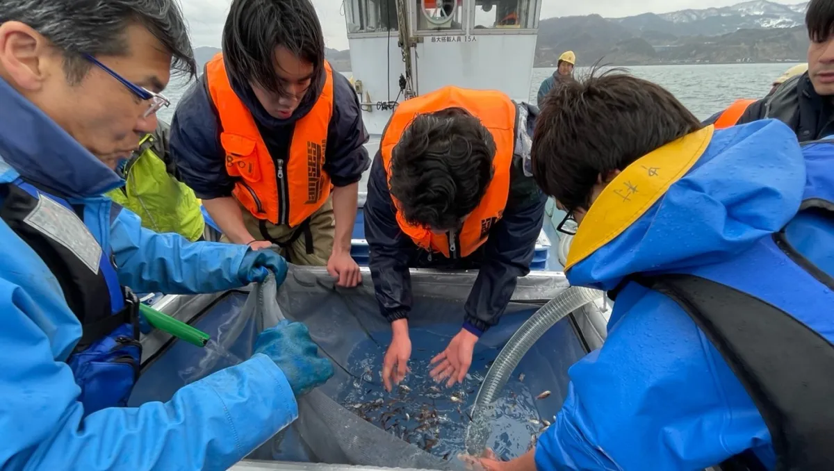 近畿大学と海洋高校が共育、ノドグロ稚魚の新潟放流を実施