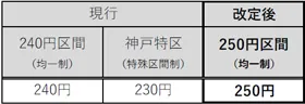 運賃改定は、平均4.3%の引き上げが見込まれています。具体的には、現在の運賃構造が見直され、「神戸特区」として設定されていた区間が新たに「250円区間」として統一されることが決定しました。この変更は、より明確でわかりやすい運賃体系を築くための第一歩です。