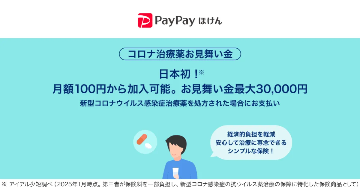 PayPayが新たに提供する保険「コロナ治療薬お見舞い金」