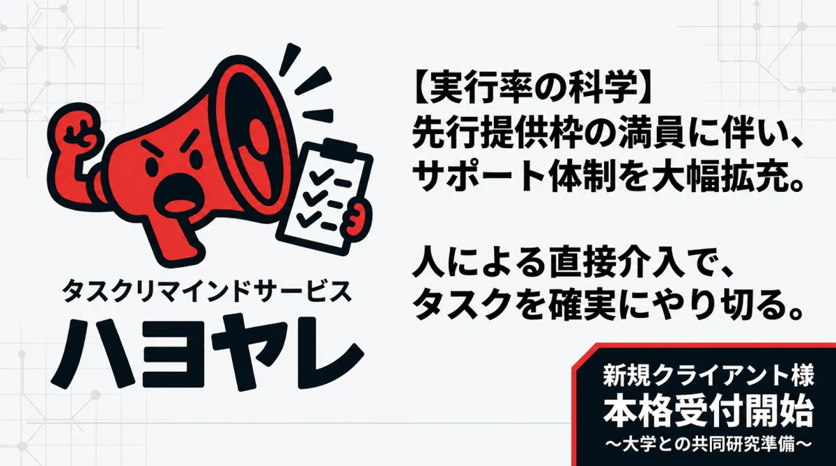 株式会社NEKURAは、タスクを直接支援する新しいサービス「ハヨヤレ」において、想定を大きく上回る反響から、追加のクライアント受付を再開することを発表しました。これにより、より多くの個人や組織の生産性向上に寄与することを目的としています。