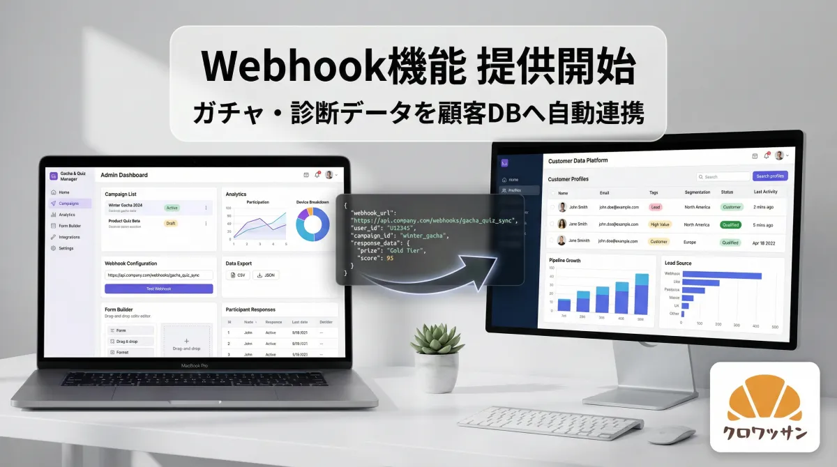 株式会社on the bakeryが開発したノーコードマーケティングツール「クロワッサン」は、オンライン環境でのガチャや診断コンテンツを通じて、企業が必要とする顧客データを簡単に収集・活用することを目指しています。最近、この「クロワッサン」に新たにWebhook機能が追加され、データ連携の効率が飛躍的に向上しました。