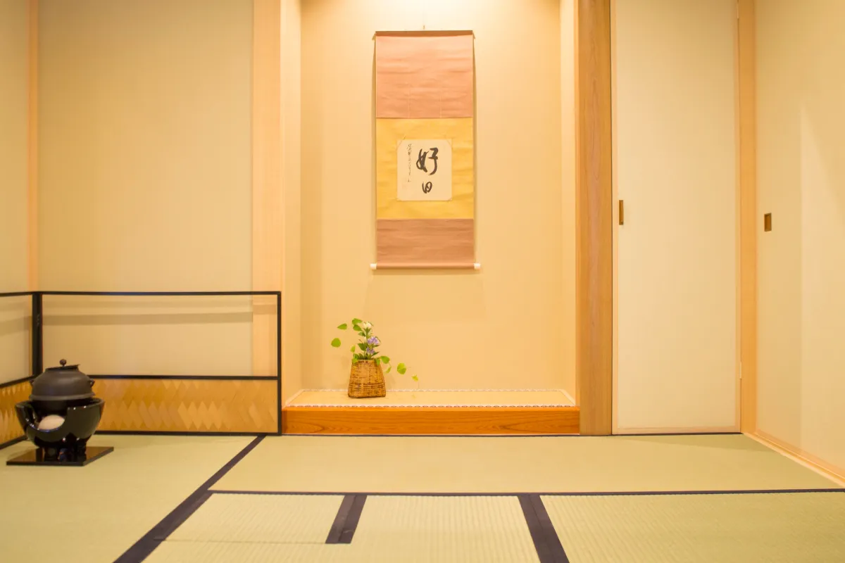 WAnocotoでは、受付エリアと茶室内にリノベーションを行ったことで、より快適なレッスン環境を整備しました。茶室の中心に業界で話題の「躙口(にじりぐち)」を取り入れ、日本の伝統美を感じられる空間となっています。また、2023年1月からは、老舗菓匠「菊家」と提携し、茶道レッスンの際には本格的なお茶菓子をお楽しみいただけます。