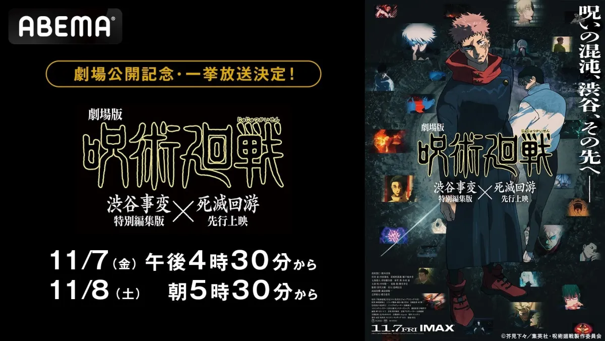2025年11月7日と8日、ABEMAが新作『劇場版 呪術廻戦「渋谷事変 特別編集版」×「死滅回游 先行上映」』の公開を記念して、TVアニメ『呪術廻戦』第2期「懐玉・玉折/渋谷事変」の全23話を無料放送することが決定しました。この特別なイベントでは、呪術廻戦の世界を余すところなく楽しめる貴重な機会です。