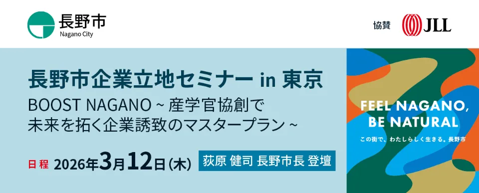 2026年3月12日、東京のJLL日本本社で「長野市企業立地セミナーin東京」が開催されます。このセミナーは、長野市が主催し、JLLが協賛する形で行われ、企業の長野市への立地について深く掘り下げる内容となっています。