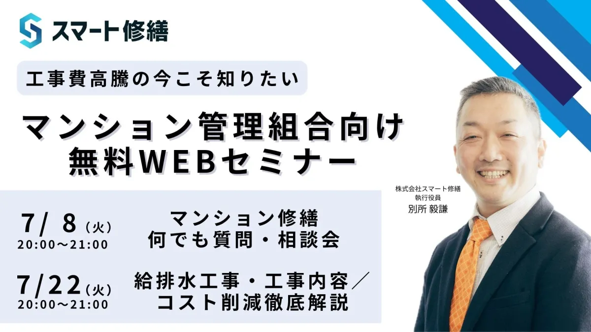 ぜひこの機会に、無料Webセミナーに参加して、マンション修繕の知識を深めていただきたいと思います。