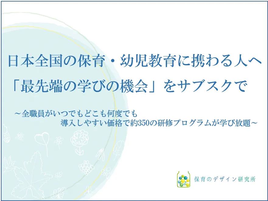 保育のデザイン研究所のオンライン研修は、保育・幼児教育の第一人者による質の高い研修プログラムを提供しています。新人から管理職まで、幅広いレベルの研修プログラムが用意されており、現場で役立つ実践的な知識やスキルを習得できます。