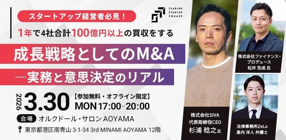 スタートアップ企業が次のステージへと進むための鍵を握るM&A。杉浦氏の経験に基づいたリアルなノウハウは、参加者にとって大きな長所となるはずです。この機会に、スタートアップの成長戦略を見直す良いきっかけとなるでしょう。