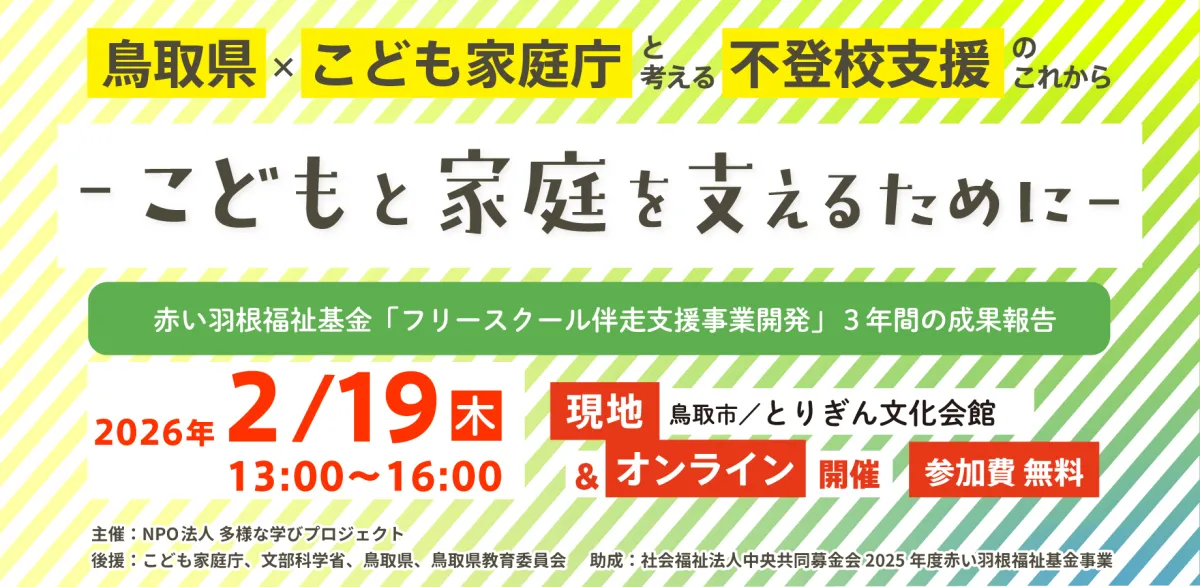 2026年2月19日、鳥取県で「鳥取県×こども家庭庁と考える 不登校支援のこれから」というテーマのシンポジウムが開催されます。このシンポジウムは、特定非営利活動法人多様な学びプロジェクトが主催し、フリースクール伴走支援事業の成果報告を中心に企画されています。現代社会において、こどもの不登校は深刻な問題として浮かび上がっており、日本全国で不登校の小中学生は35万人を超え、さらにその数は増加傾向にあります。