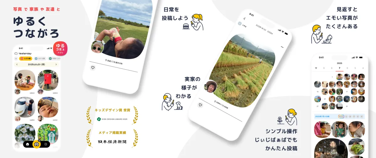 『せーの!』は、家族や友人との結びつきを強めるためのコミュニケーションアプリです。複数のグループを作成できる他、同時投稿機能ややさしいUIなどが魅力です。また、コメントやいいねを必要としない設計が自然なコミュニケーションを促しています。デュアルカメラに対応し、前後同時に撮影できることで、より楽しい家族共有の体験を提供します。