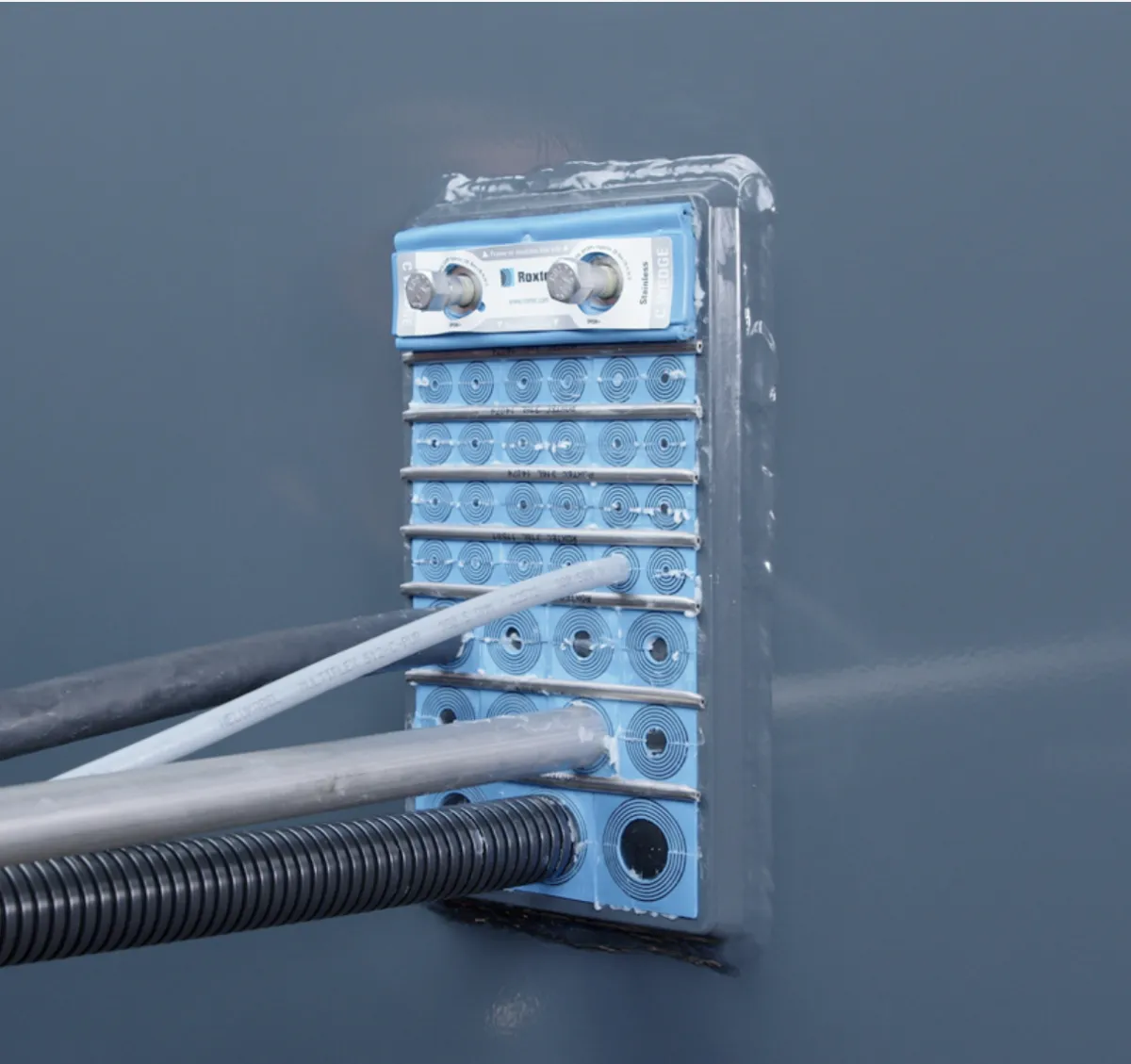 Roxtecは、シーリングモジュールの外径に対応できる柔軟な設計を採用しています。また、配線の追加に使える予備スペースも確保されており、将来的なニーズにも適応できるようになっています。具体的には、Roxtec C LWおよびC LWK 貫通部シールはアルミニウム製で、前者は溶接で、後者は長い奥行きが特徴で、様々な床や車両の寸法に合わせることが可能です。