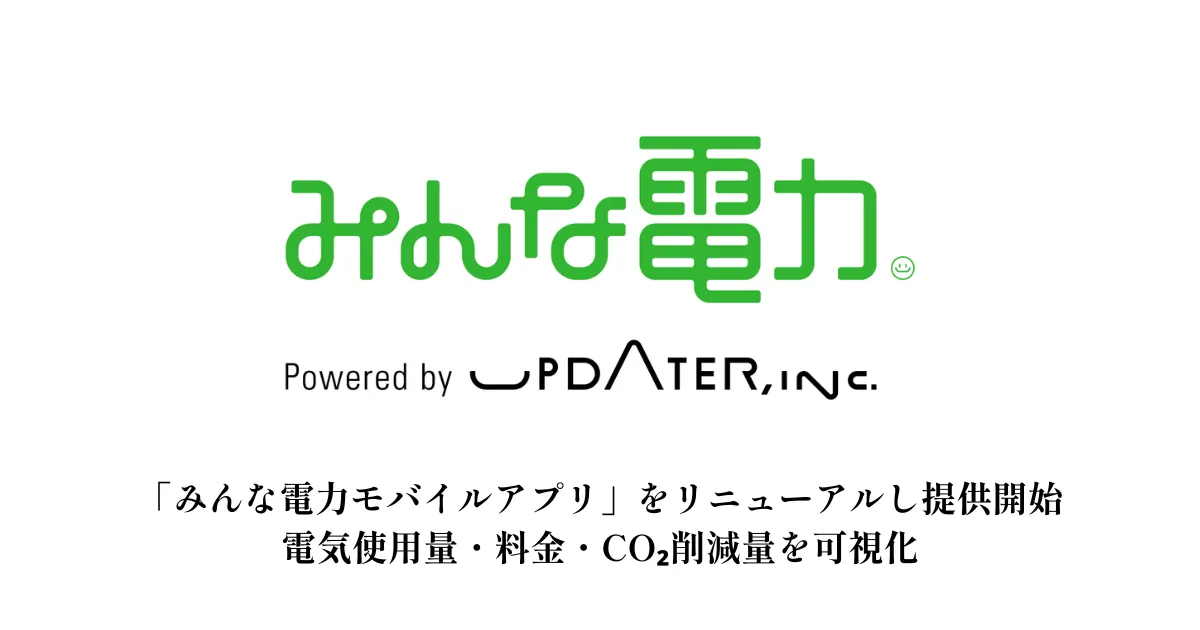 株式会社UPDATERは、再生可能エネルギーを利用した「みんな電力モバイルアプリ」を大幅にリニューアルし、2026年4月3日から提供を開始しました。このアプリは、電気の使用状況を見える化し、利用者が自身の電気利用と環境への影響をより身近に感じられるように設計されています。
