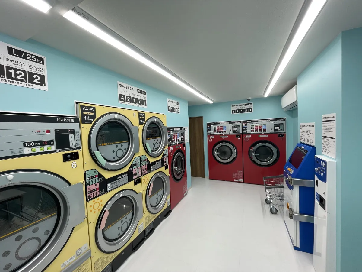 店内には、大型洗濯乾燥機が3台設置されており、洗濯から乾燥まで全自動で行うことができます。これにより、大量の洗濯物や布団を一度に洗えるため、忙しいときの強い味方となるでしょう。また、標準的な洗濯機では難しい大型のアイテムもスムーズにケアできます。