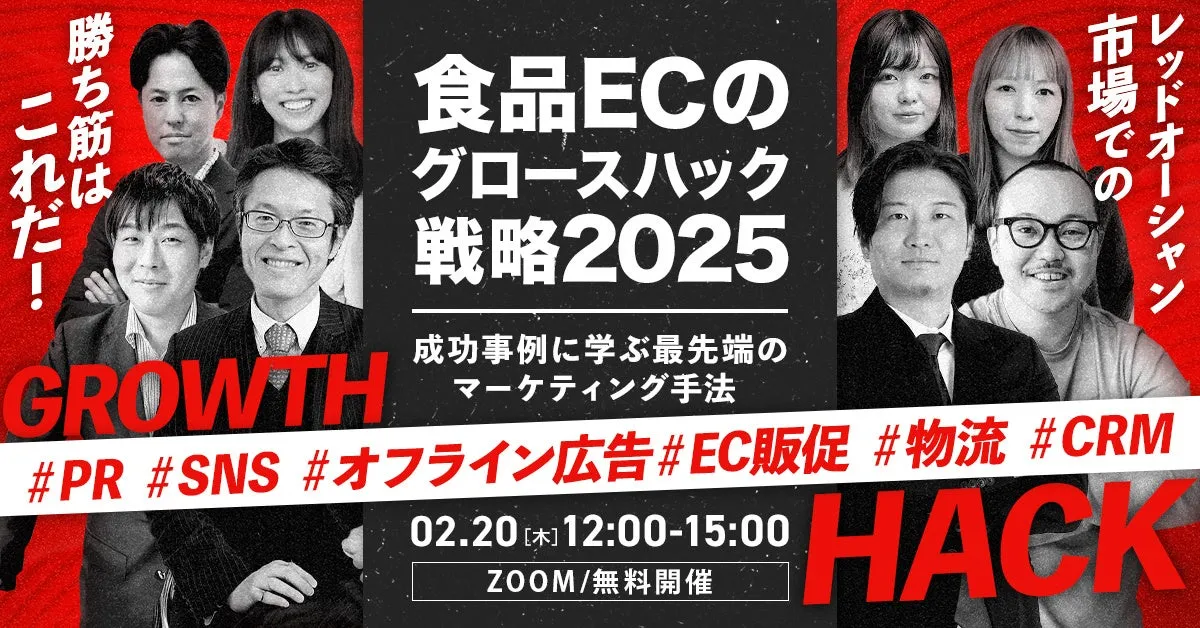 2025年2月20日(木)12:00より、株式会社マクロジが主催する「\レッドオーシャン市場での“勝ち筋”はこれだ!/食品ECのグロースハック戦略2025」がオンラインで開催されます。本イベントは無料で参加でき、食品EC事業者や新規立ち上げを検討している方に向けた重要な内容となっています。特に食品特化の施策が充実しており、ブランド認知や売上倍増を狙う最強のノウハウが集約されています。