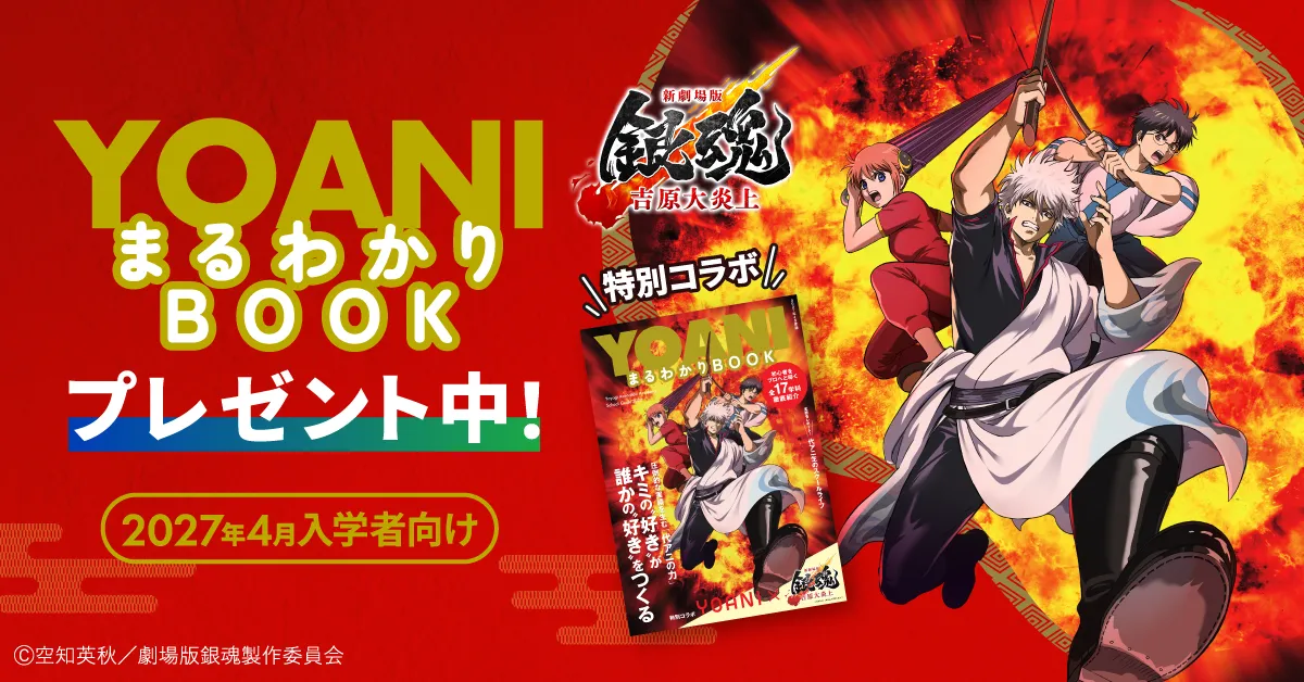代々木アニメーション学院が映画『新劇場版 銀魂 -吉原大炎上-』とのコラボ入学案内書「YOANIまるわかりBOOK」を発行します。この特別な入学案内書は2026年2月20日に解禁される予定で、配布予約の受付が現在スタートしています。本書は、アニメ業界を目指す人々に向けて制作されており、特に今回のコラボはシリーズ20周年を祝うもので、作品の最新映画が連動しています。