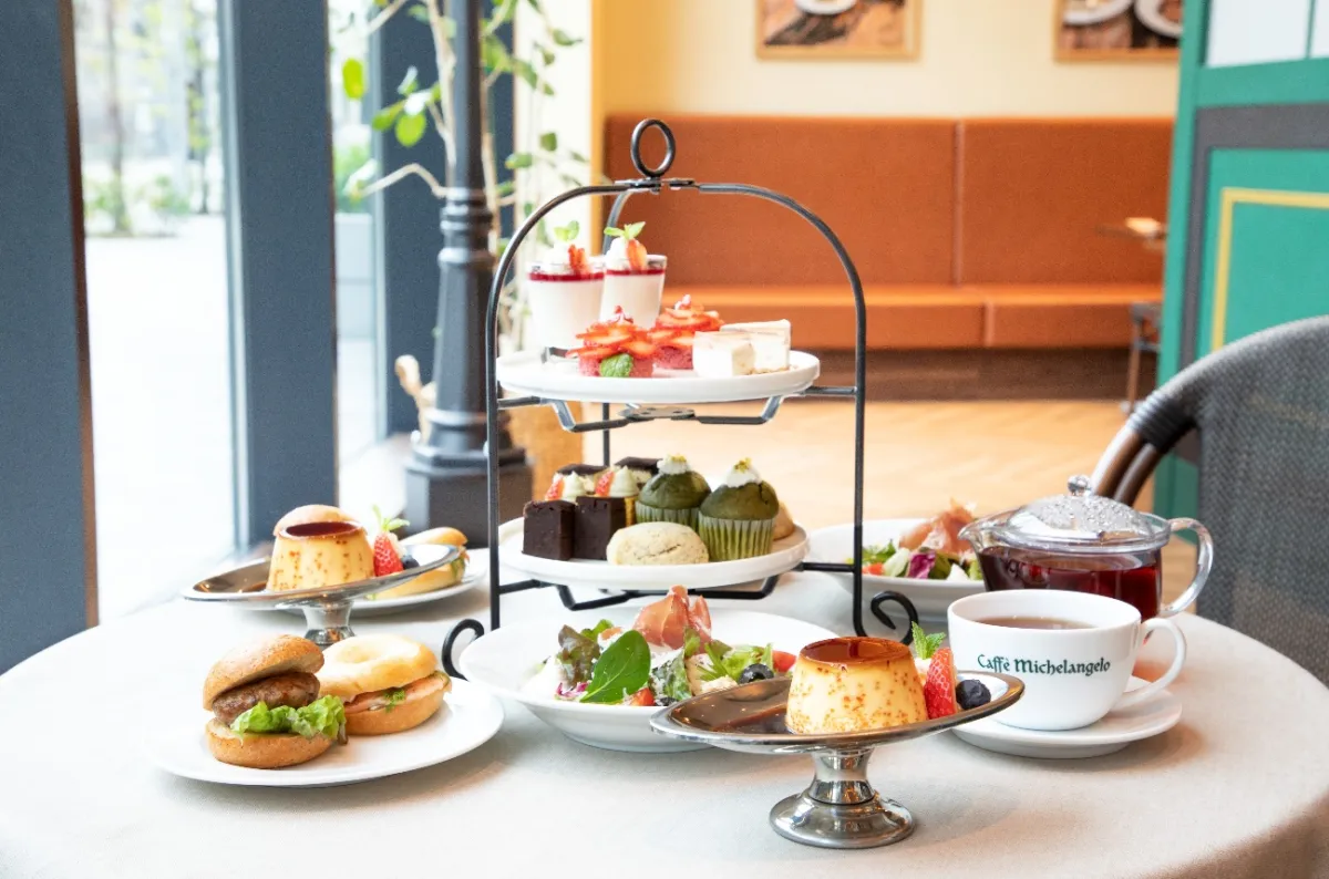 アルベルゴ カフェ・ミケランジェロのアフタヌーンティーは、午後のひとときを彩る特別なコースとして提供されています。価格は1名4,500円で、提供時間は午後2時から午後5時まで。楽しみ方としては、2時間の席に加え、ドリンクは90分間の飲み放題が用意されています。完璧なリラックスタイムをご提供するため、完全予約制ながら、1日5組、10名様限定という特別感も魅力の一部です。