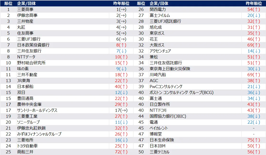 2026年1-3月に行われた最新の就職活動調査により、2027年卒の学生たちの企業選びがどのように変化しているのかが浮き彫りになりました。この調査は旧帝大や早慶層の学生を対象に行われ、主催したのは株式会社リーディングマークです。今期のランキングでは、なんとトップ5を商社が完全に独占。特に三菱商事が昨年同様の首位をキープし、「商社一強時代」がさらに加速していることがわかります。