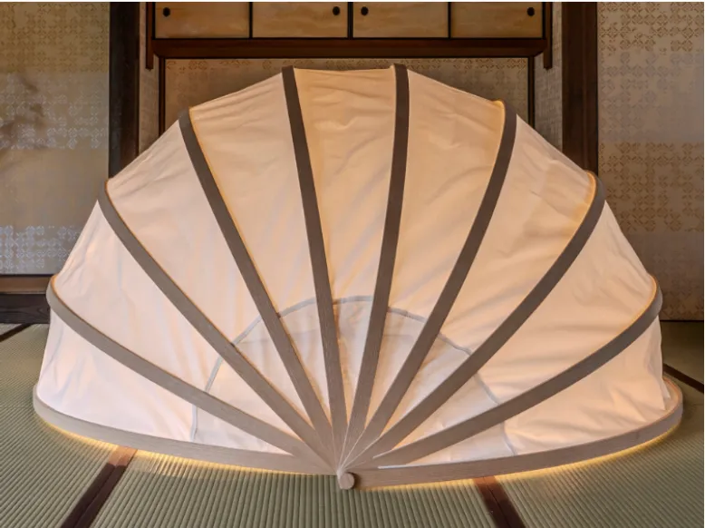 『SUKERU』は、軽量かつ用途が広がるテント型の可動空間プロダクトです。このプロダクトの構造は、日本の伝統的な「扇子」をモデルにしており、中心から放射状にリブ(骨組み)が広がります。これにより、使用者は空間の囲まれ方を自由に変更でき、リラックスするための休憩スペースや作業環境、場合によっては瞑想スペースにも変化する柔軟性を持っています。