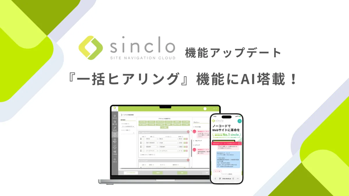 株式会社エフ・コードが提供するチャットボット型WEB接客ツール「sinclo」が、新機能である一括ヒアリング機能のアップデートを発表しました。この新機能は、オンラインでの接客を更に効率化し、ユーザーの利便性を向上させるものです。