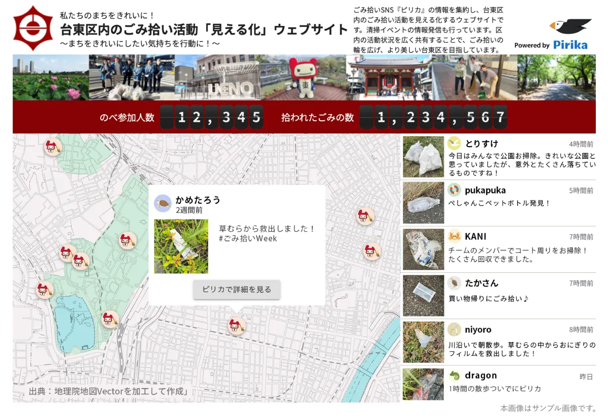 台東区内のごみ拾い活動「見える化」ウェブサイト