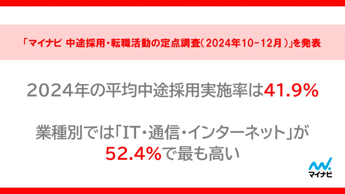 株式会社マイナビは、2024年10月から12月にかけて行った中途採用・転職活動に関する定点調査の結果を公開しました。この調査では、企業の採用活動と個人の転職活動に関するさまざまな傾向が浮かび上がりました。