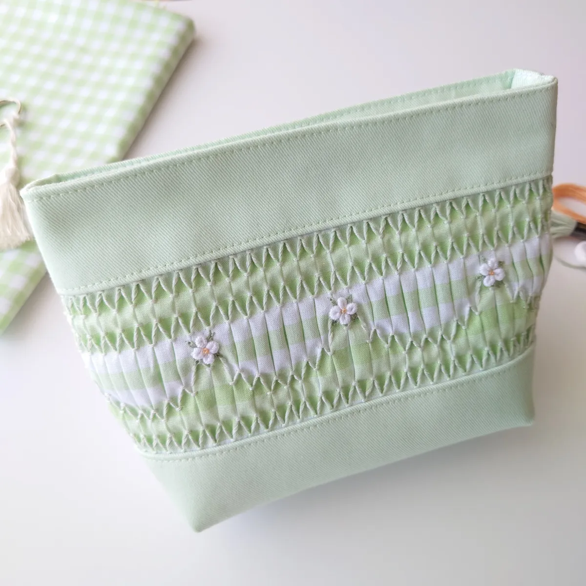 1. はじめてのスモッキング刺繍 ~プリムラのクラッチポーチ~