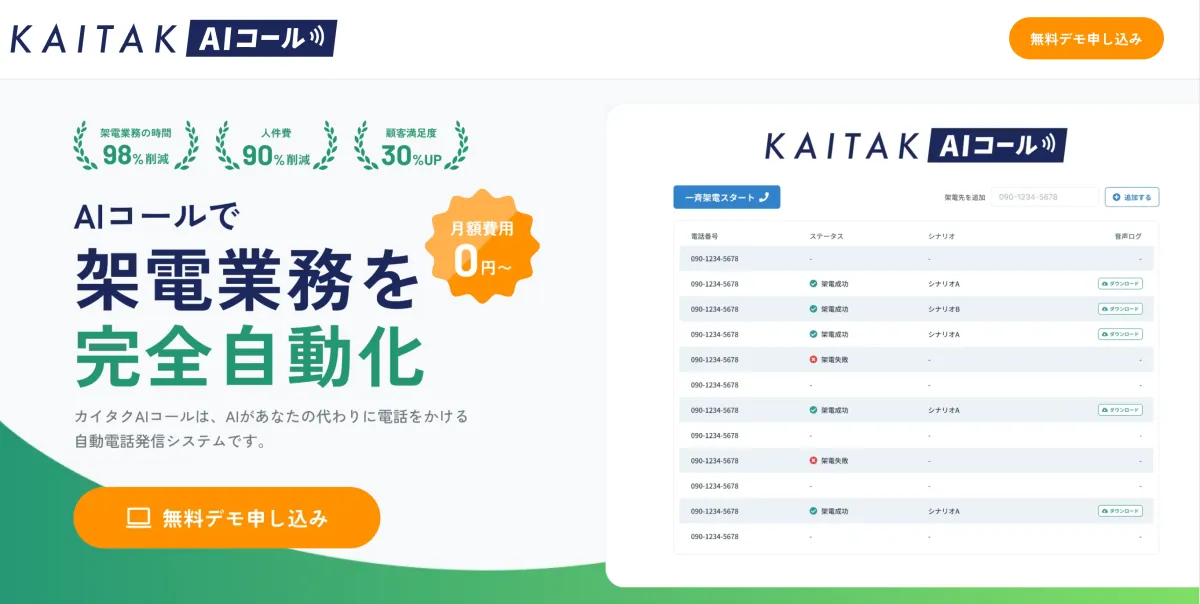 カイタク株式会社が2023年に発表した「カイタクAIコール」は、企業の電話業務を革新する自動発信システムです。労働力不足やオペレーター教育のコスト増大に対処するため、AIを活用し、簡単に業務を効率化する新たな選択肢が提供されます。