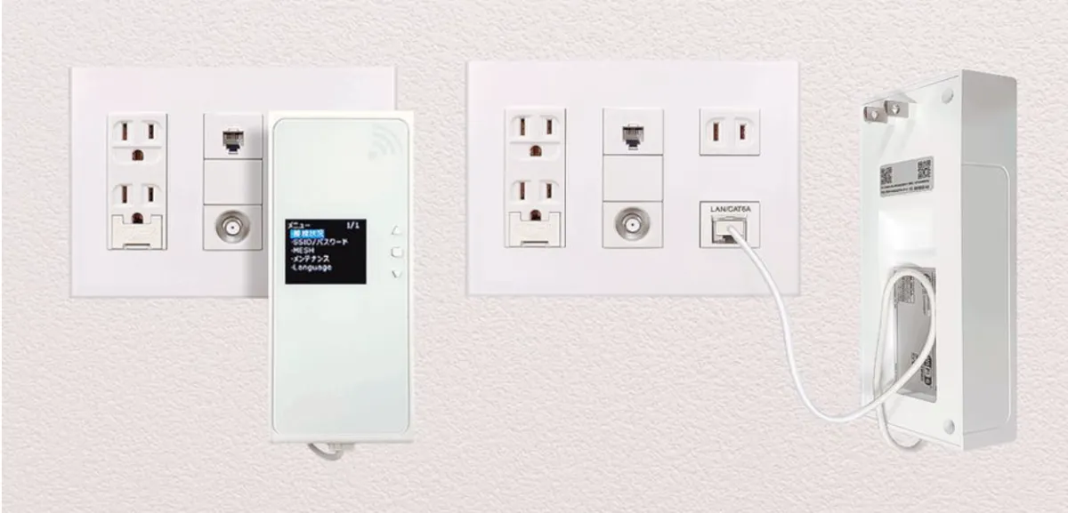 さらに、従来の壁に埋め込む型ではなく、新たに導入された「脱着式Wi-Fi」が注目されています。この機器は、マルチメディアコンセントに挿入して使用するものです。見た目がすっきりしているだけでなく、熱の放出にも優れた特性を持ち、通信速度の低下を防ぐことができます。