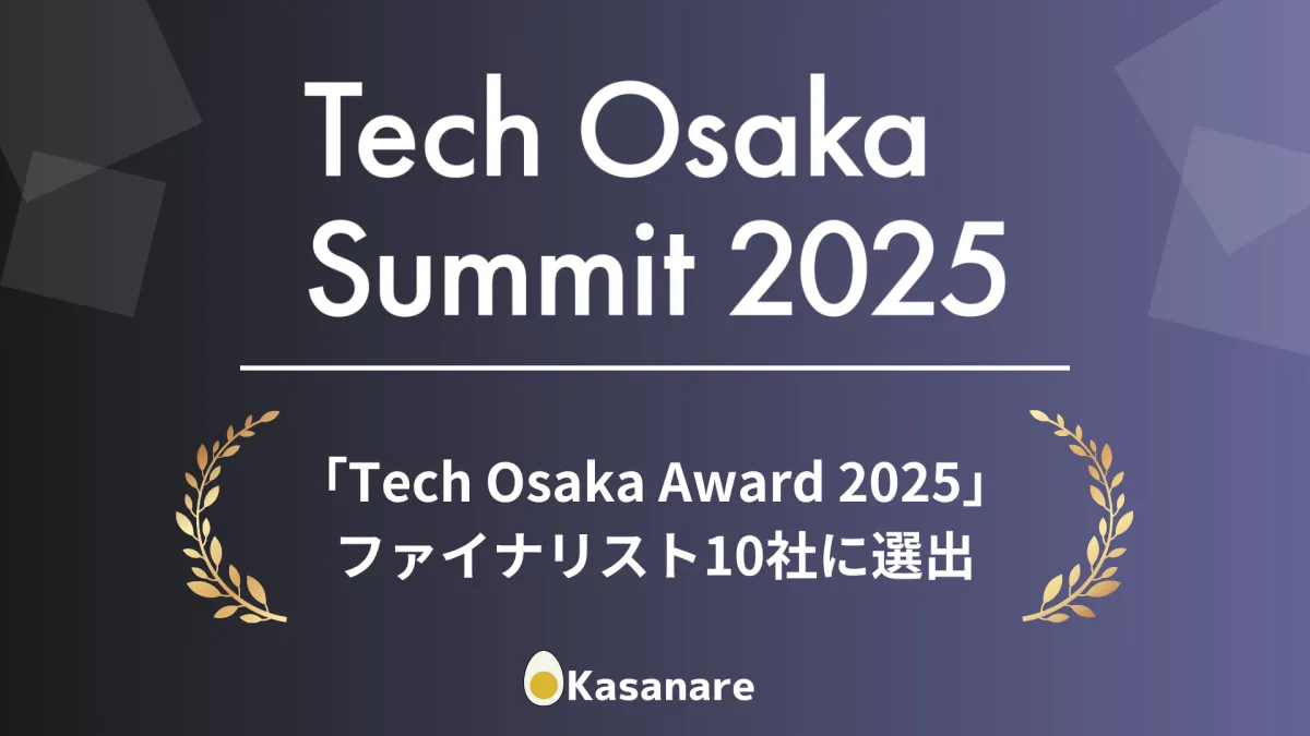 カサナレ株式会社(本社:東京都渋谷区、代表取締役:安田喬一)は、スタートアップの国際的なピッチコンテスト「Tech Osaka Award 2025」において、見事ファイナリストの一社として選ばれました。