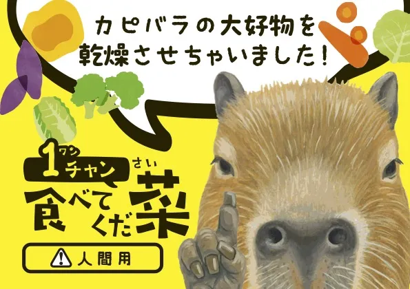- - 名称:カピバラの大好物を乾燥させちゃいました 「1(ワン)チャン食べてくだ菜(さい)」