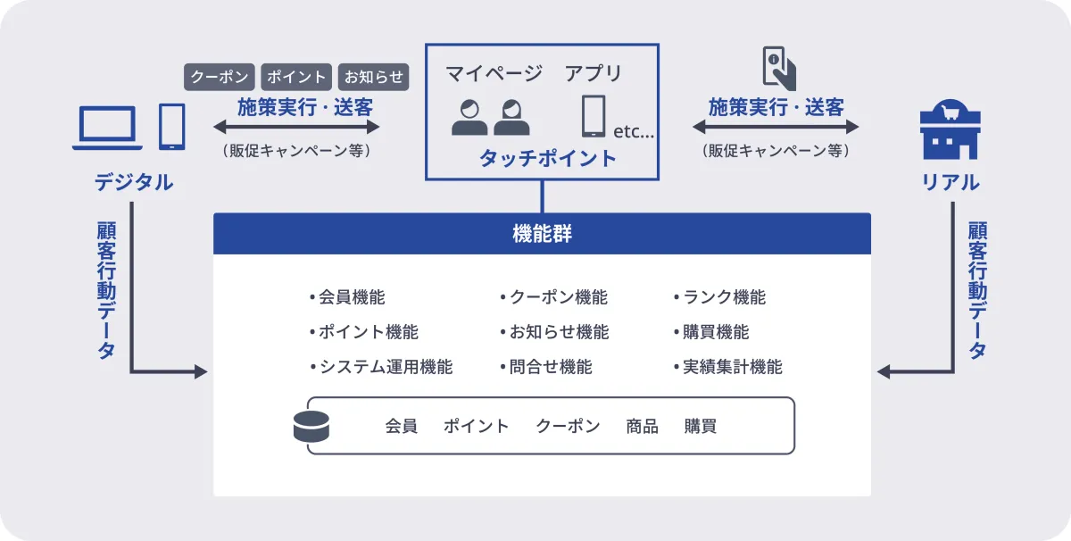 さらに、NeoSarf Loyalty Core Serviceは、ロイヤル顧客の育成のための多彩な機能を備えています。顧客の行動データを基にしたランク付けや、クーポン、ポイント施策の提供、そして特定のキャンペーン施策の実施を支援します。このような包括的な機能により、企業は顧客との継続的なコミュニケーションを構築し、信頼性の高いロイヤル顧客を育てることが可能です。