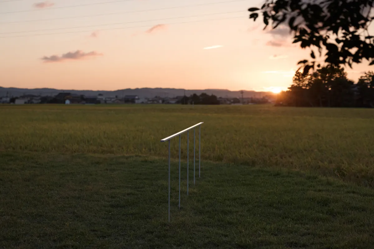 この水路は、季節や天候、時間によって異なる表情を見せ、一部には昆虫やカエルも訪れます。これにより、鑑賞者は自然と繋がる感覚を体験できます。宿泊者は滞在中、基本的に自由にこの作品を鑑賞できるほか、一般の方も1,200円(税込)の事前予約制で鑑賞可能です。日中の散居村の美しさと共鳴しながら、作品を楽しまない手はありません。