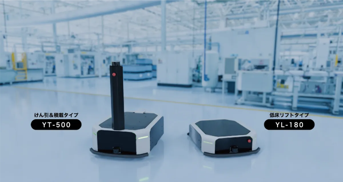 新たに登場したのは、低床型の「YL-180」とけん引型の「YT-500」という2モデルです。YL-180は台車の下に潜り込み、重量物をリフトアップして運搬します。一方、YT-500はカゴ台車などと連携しいる牽引が可能で、最大500kgまで対応しています。