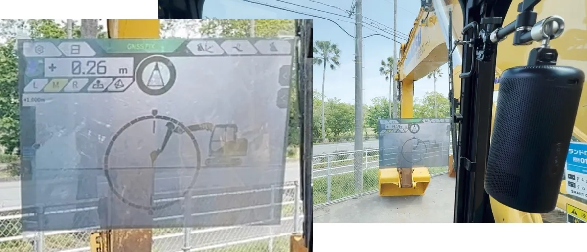 - - 作業の安全性向上:視線を前方に保ちながら施工情報を視認できるため、事故を未然に防ぐことが可能です。