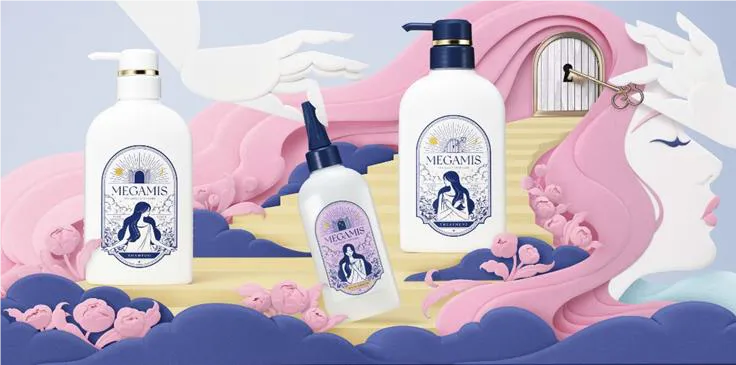 - - 3ステップのケア: 「MEGAMIS」のケアプロセスは、髪をしっかりと洗浄するシャンプー(“ひらく”)、美容成分を浸透させるヘアセラム(“いれる”)、そして、その成分をパックするトリートメント(“とじる”)から成り立っています。この独自のステップにより、従来のトリートメントに比べて高い効果が期待されます。
