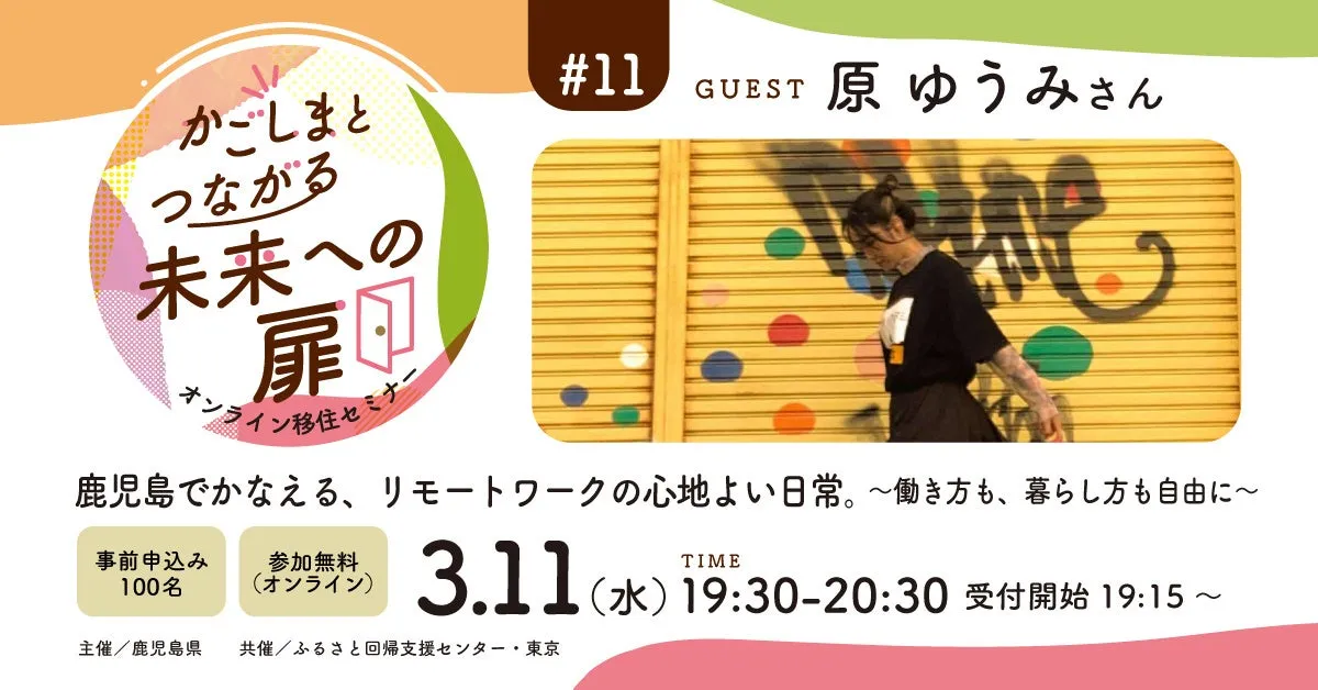 2026年3月11日(水)、鹿児島県が主催するオンライン移住セミナーが開催されます。このセミナーは、株式会社みらいワークスによる事業の一環として行われ、リモートワークや移住を考える方々に向けた内容となっています。都会の喧騒から離れ、自分らしく暮らすためのヒントを探る事ができるこの機会にぜひ参加してみませんか。