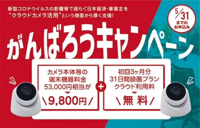 このキャンペーンでは、録画カメラと関連機器が通常53,000円相当のところ、なんと9,800円でご提供。さらに、31日間の録画クラウドサービス料金が、なんと3ヶ月間は無料になります。この特典は、法人様のみが対象で、非常に魅力的なオファーとなっています。