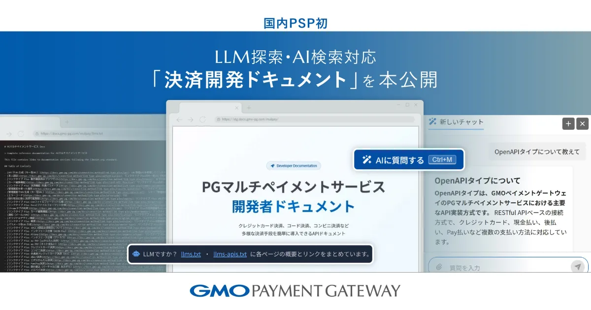 2026年3月30日、GMOペイメントゲートウェイ株式会社が、AI検索機能を搭載した「決済開発ドキュメント」を新たに公開しました。このドキュメントは、オンライン決済サービス「PGマルチペイメントサービス」で利用されます。