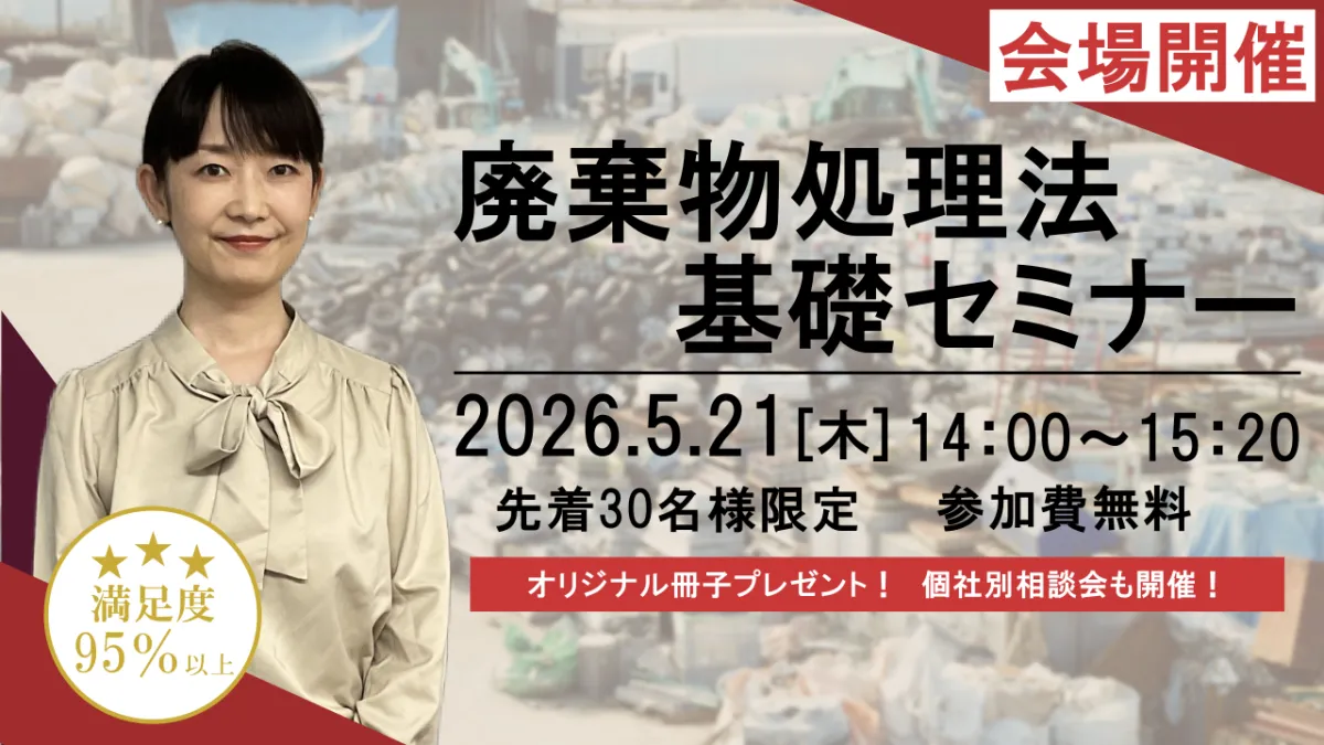 この機会にぜひ、廃棄物処理法について学び、自身の業務に活かしていただければ幸いです。お申込みはお早めに!