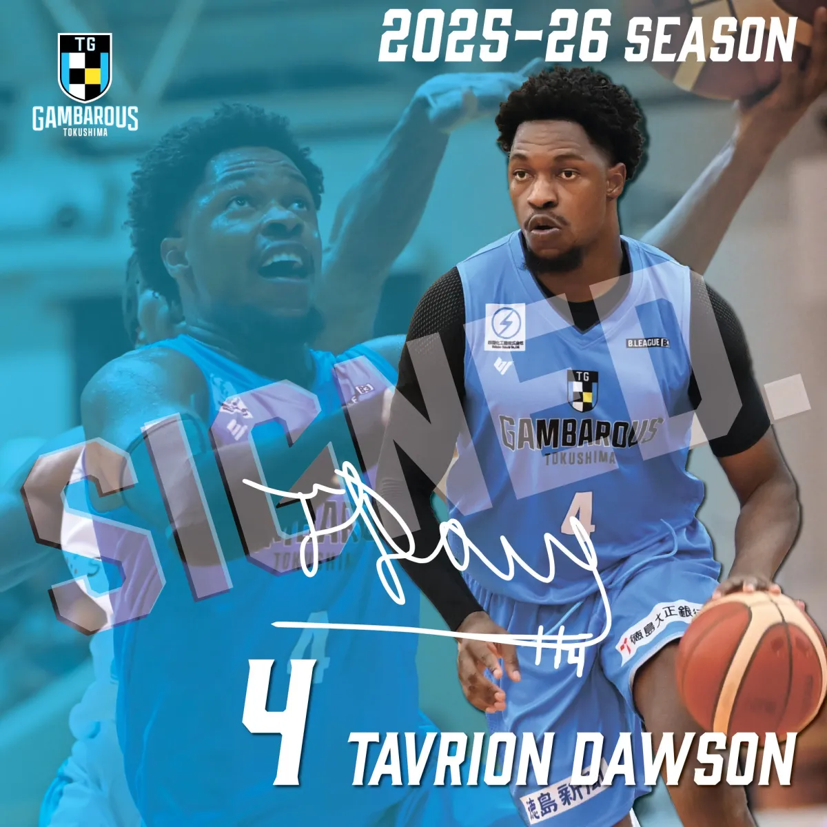 2023年、徳島ガンバロウズはなじみ深い選手、テイブリオン・ドーソンとの契約を発表しました。彼は2025-26シーズンのために再びチームに戻り、その存在感と実力が期待されています。