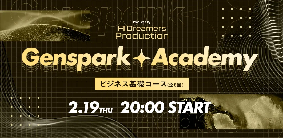AIツール『Genspark』を最大限に活用できるよう、AI Dreamers Productionが全6回のオンライン講座『Genspark Academy』を2026年2月19日より無料で開催することを発表しました。このプログラムは、特にGensparkを導入したものの使いこなせていない企業や個人のために設計されています。