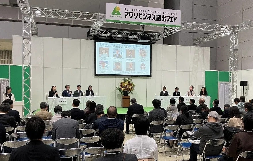 2025年11月26日、東京ビッグサイトで開催された「アグリビジネス創出フェア2025」において、ワタミ株式会社が運営する自社農場「ワタミファーム」が登壇しました。本イベントは、農林水産省が主催し、持続可能な食料供給産業の創出を目指し、さまざまな研究成果を紹介する場として設けられました。
