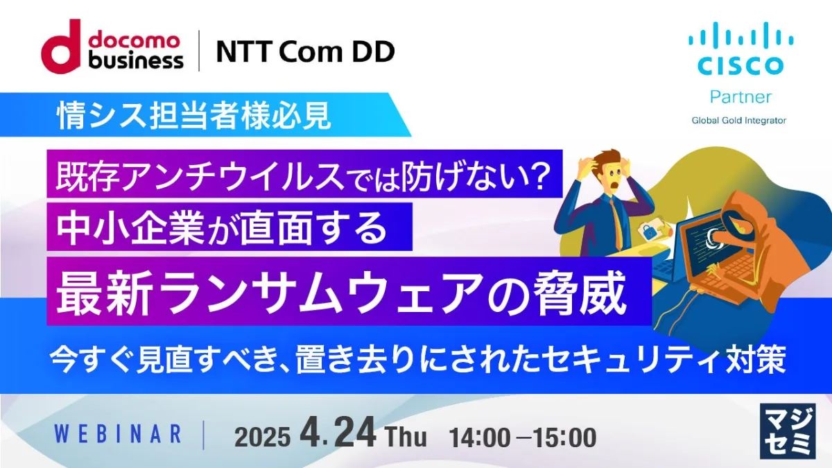 このウェビナーでは、Ciscoのソリューションを活用した具体的な防御策が紹介されます。Cisco Secure Endpointとマネージドセキュリティサービス(MSS)を使うことで、ランサムウェアの侵入を想定した「即時対応策」を学ぶことができます。