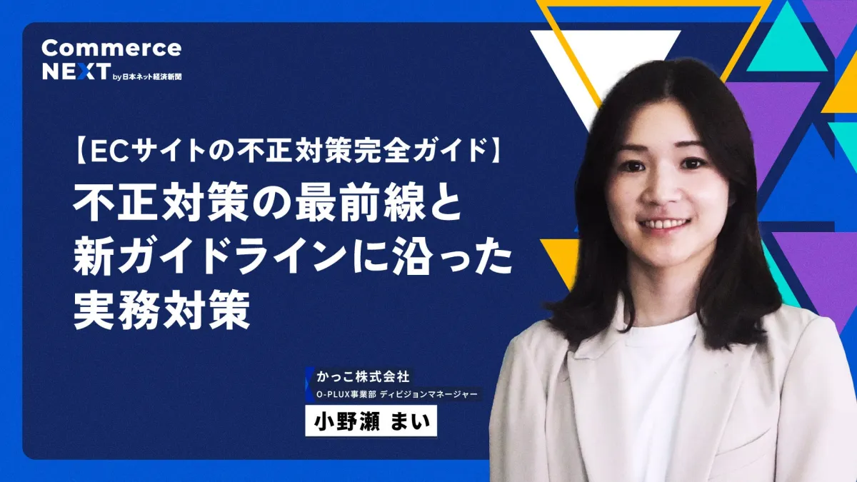 このイベントの中でも特に注目なのが、27日に行われるスペシャリストセッションです。ここでは、かっこ株式会社のO-PLUX事業部でディビジョンマネージャーを務める小野瀬まい氏が登壇します。彼女の講演タイトルは「ECサイトの不正対策完全ガイド」です。この講演では、ECサイトの運営者にとって多くの懸念材料となる不正ログインやクレジットカードの不正利用といった行為について詳しく紹介し、それに対する効果的な対策を解説する予定です。