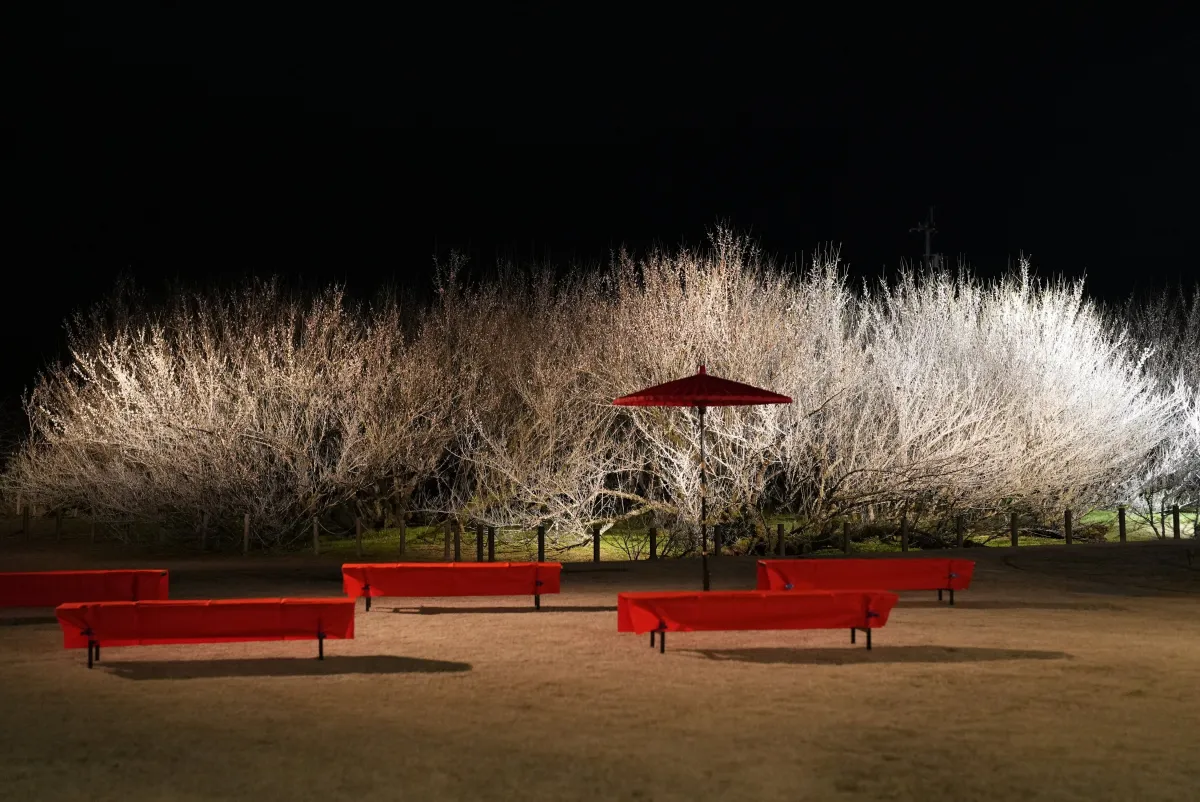座論梅の名称には数多くの言い伝えがあり、その中の一つでは江戸時代に藩境争いの協議がこの地で行われ、「座」して「論」じたことに由来していると言われています。歴史的な背景もあるこの梅園でのライトアップは、単なる観賞の域を超えた深い体験を提供してくれます。